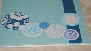 Since the cards are such different colors of blue, I decided to just do all kinds of blue and not try to make it too matchy. I think they came out okay. Also used some ribbon and dew drops that I had.